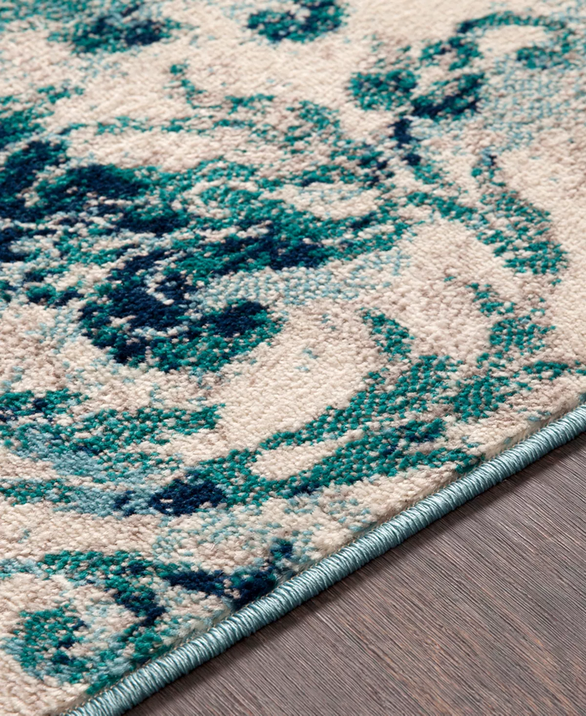 Across the overdyed-look ground of Abbie & Allie Rugs soft Paramount PAR-1102 area rug are a rich assortment of classic French-style flourishes which rendered in a vivid palette of blue tones, offer a look for your space that blends timeless elegance and chic fashion.