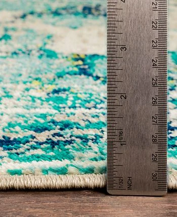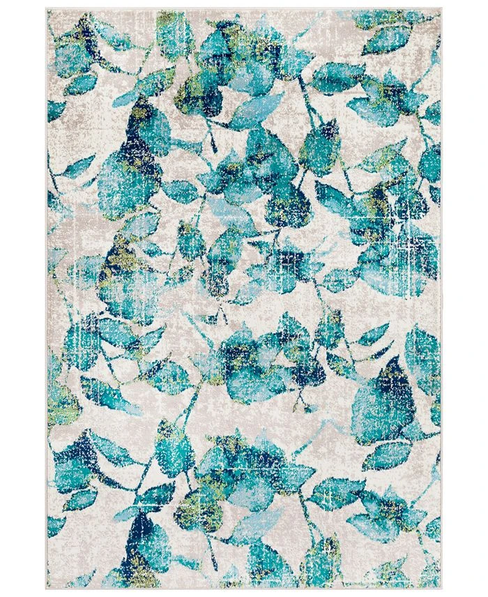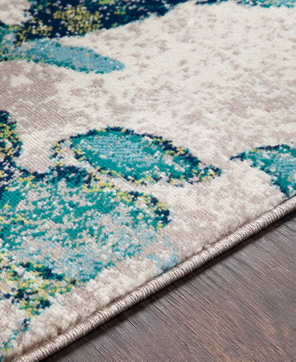 Calm the mood and appeal of any space through the serene beauty of delicate leaf motifs rendered in brisk hues of teal, aqua and dark blue on Abbie & Allie Rugs soft to touch Paramount PAR-1113 area rug.
