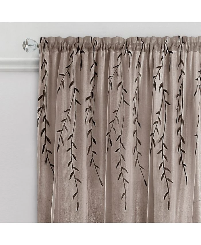 The Willow Rod Pocket Panel is an embroidered sheer organza overlay attached to a crushed textured ground under panel. Creating a layered effect using only one rod. Beautiful embroidered falling leaves top the organza overlay and create a dramatic but tranquil perspective for any window in the home. Both the ground layer or the organza overlay could be tied to the side or in the middle to create additional charming arrangements for your window.