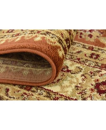 This rug is made of Polypropylene. Pile Height:1/3″. Color:Brick Red. Kid and pet friendly. Easy to clean and does not shed. Stain and fade resistant.