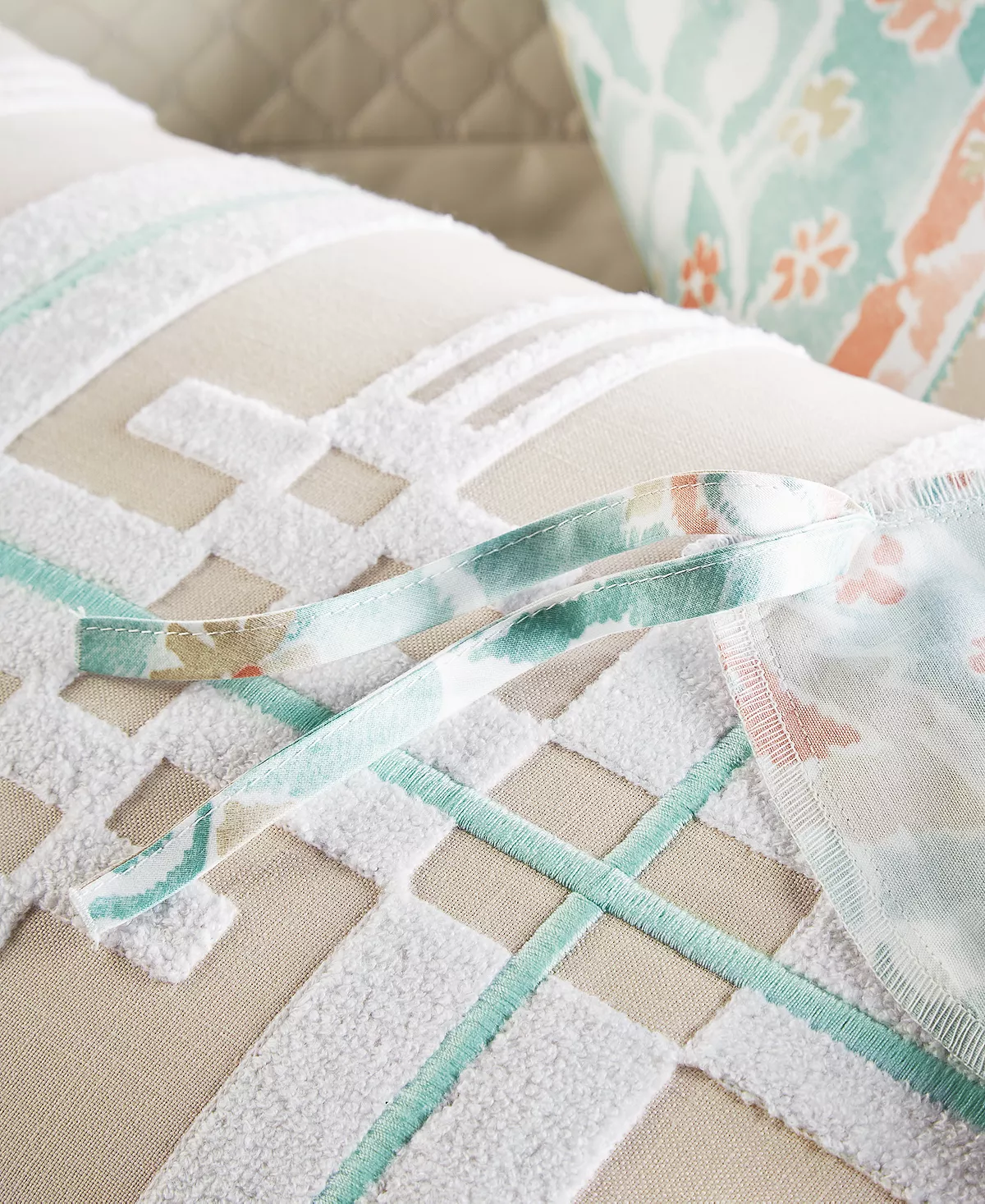 Evoke the feeling of the desert with the Damask Designs Terra Mesa Comforter Set from Charter Club, featuring a smooth sateen finish and turquoise ground.