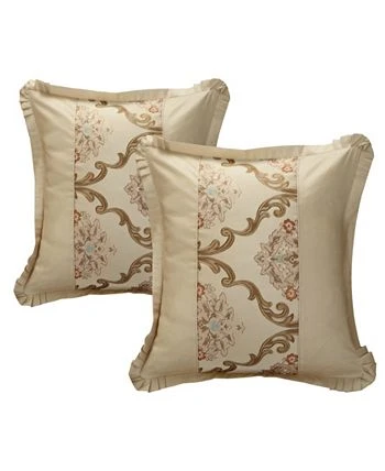 A fashion forward Jacquard comforter set with everything you need for a complete bedroom décor makeover. The comforter features an elegant Jacquard scroll design with faux silk pleated flange. Design coordinated shams, a wide array of deco pillows and a pleated faux silk bed skirt are included to complete the look.
