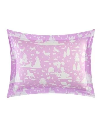 A magical comforter set perfect for back to school with everything you need to a transform a kid’s or young adult’s bedroom. The comforter features a two-tone Fantasy Forest fairy tale theme print design complete with princesses, unicorns and a field full of magical details. Design coordinated pillow shams, a heart shaped decorative throw pillow and a fleece throw blanket with a heart pattern print are included to complete the look.