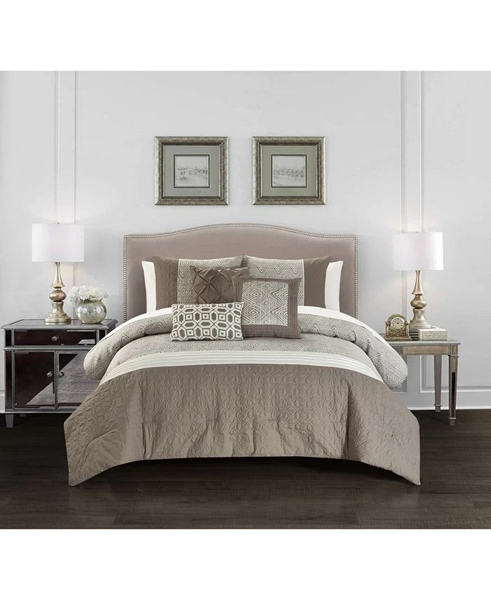 Change up your bedroom decor and give it an easy going, laid back look with the stylish Imani comforter set from chic home. This jacquard comforter features a diamond pattern color block design with pleated and quilted details.