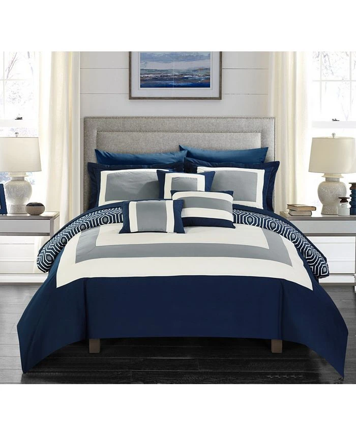 Recreate the luxurious experience found in a 5-star hotel in your bedroom. Minimalist hotel design reverses into a contemporary geometric pattern print for two looks in one. Embellished deco pillows, reversible shams and color coordinated super soft microfiber sheets are included to a complete the look.