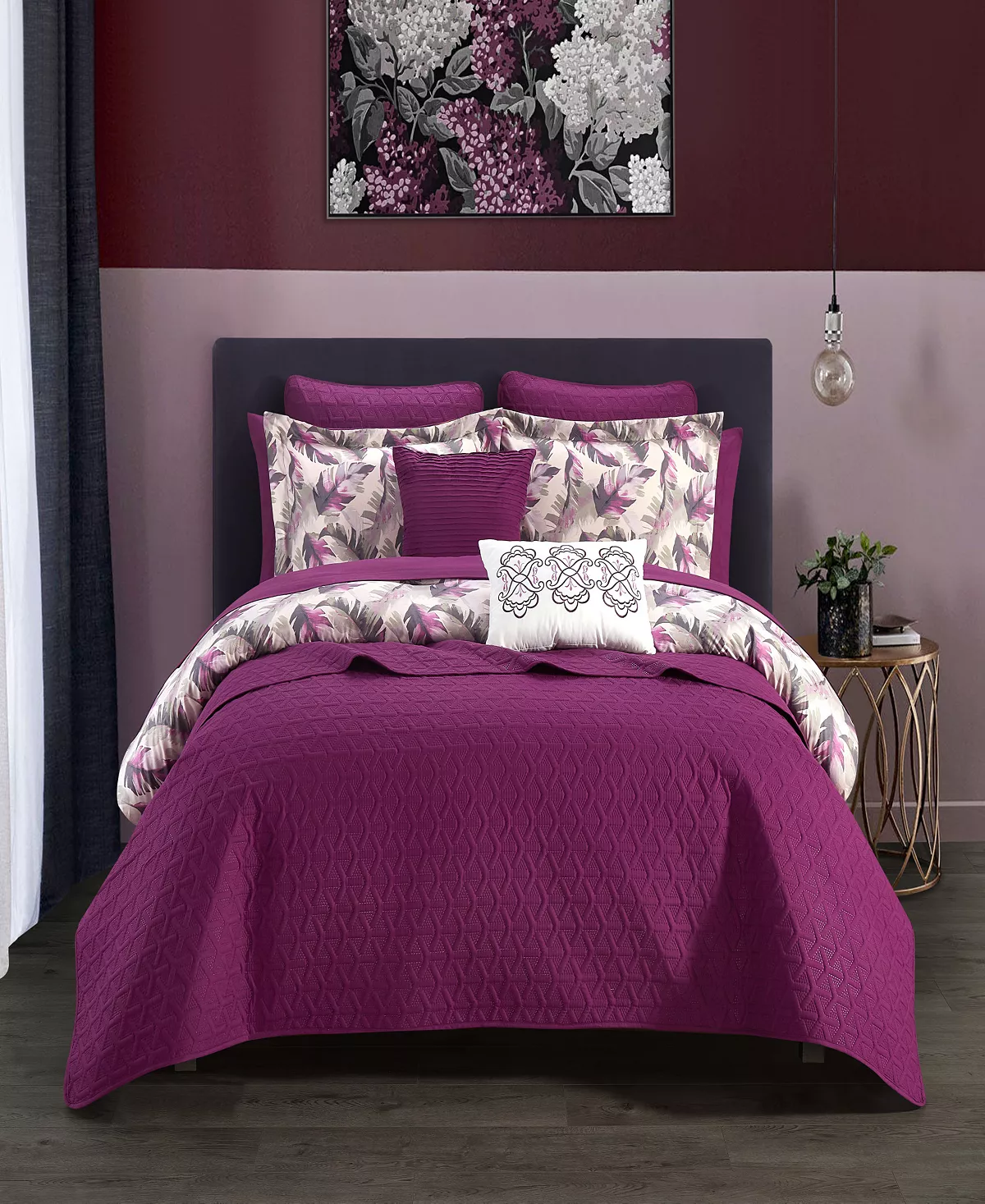 Give your bedroom a bold new look with the unique style of the kale comforter and quilt set from chic home. This set includes a stylish watercolor leaf print comforter and a geometric pattern quilt, giving you the freedom to mix and match as you please.
