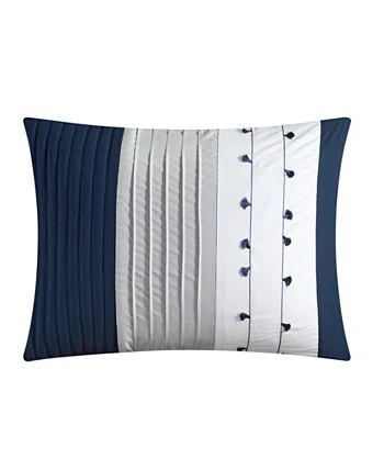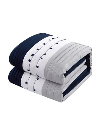 Give your bedroom a fresh, clean look with the contemporary design of the Lainy comforter set from Chic Home. The comforter features a pleated and ribbed color block design with embroidered details. Two unique decorative pillows and two design coordinated pillow shams complete the look.