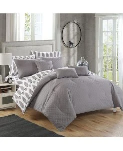 - Diamond embroidered quilting reverses to a modern printed design with design coordinated deco pillows