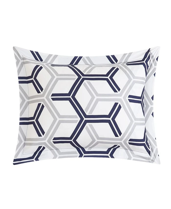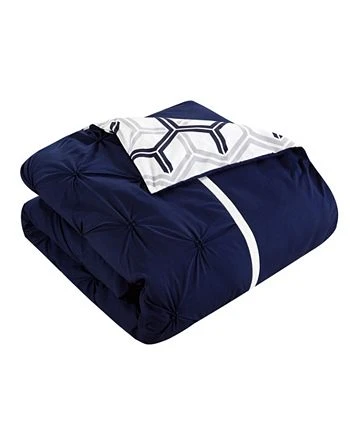 Looking for that perfect comforter set that has it all? Well, no look further! This amazing comforter set features a color block theme with pinch pleat details and reverses to a geometric hexagon pattern. Includes reversible pinch pleat sham and a reversible decorative pillow with color coordinated stripes.