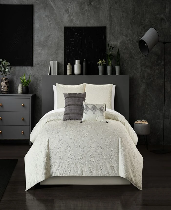 Give your bedroom a fresh, sophisticated fresh look with the stylish Mayflower comforter set from Chic Home. This comforter features an embossed scroll medallion pattern on the face. Two unique decorative pillows and a design coordinated sham complete the look.