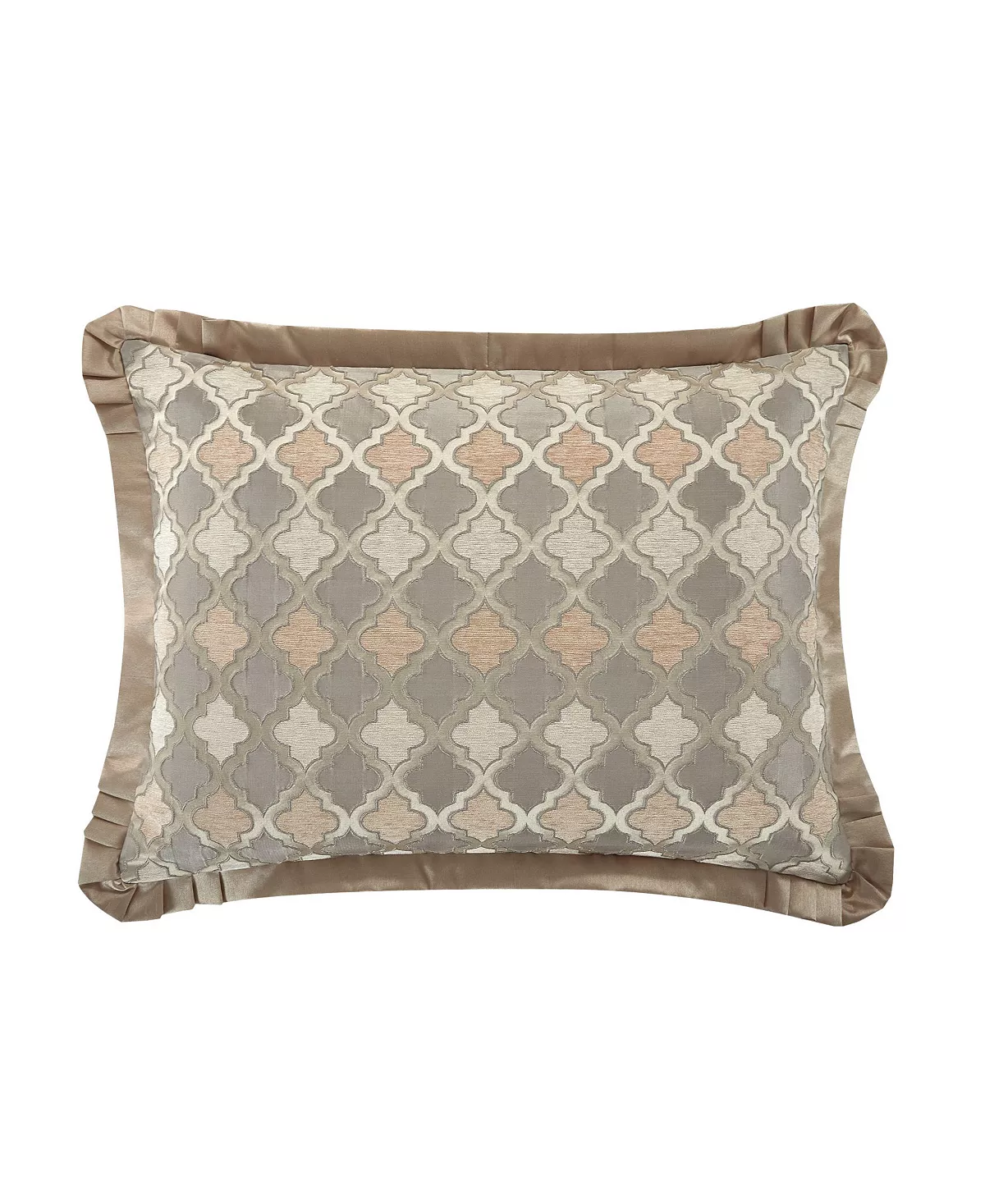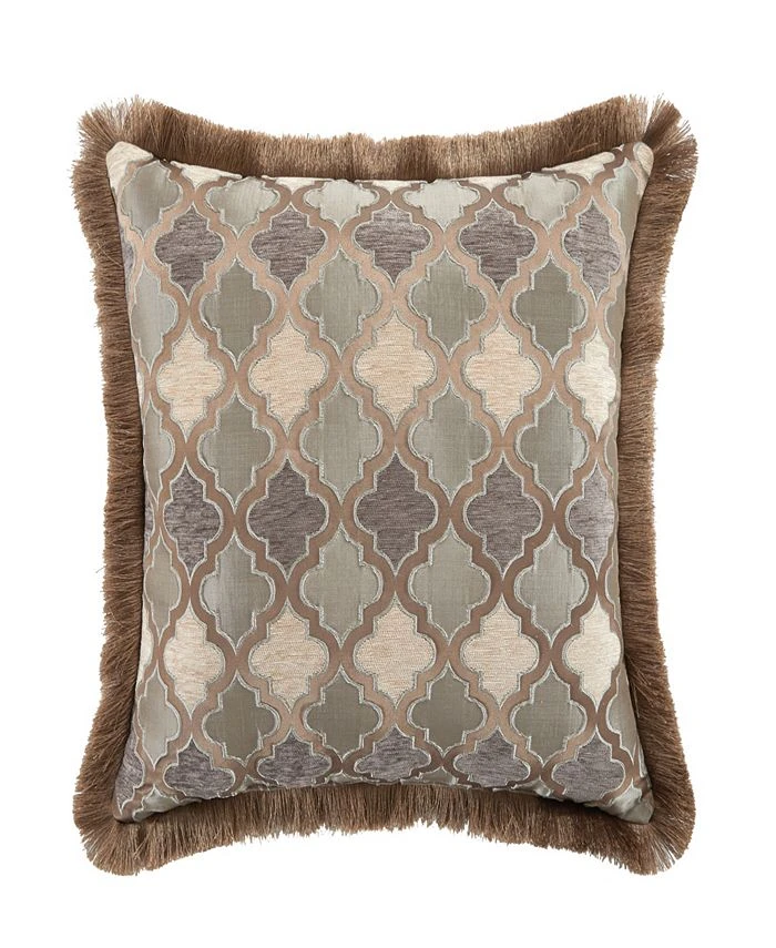 - Chenille geometric scroll design with faux silk flange border