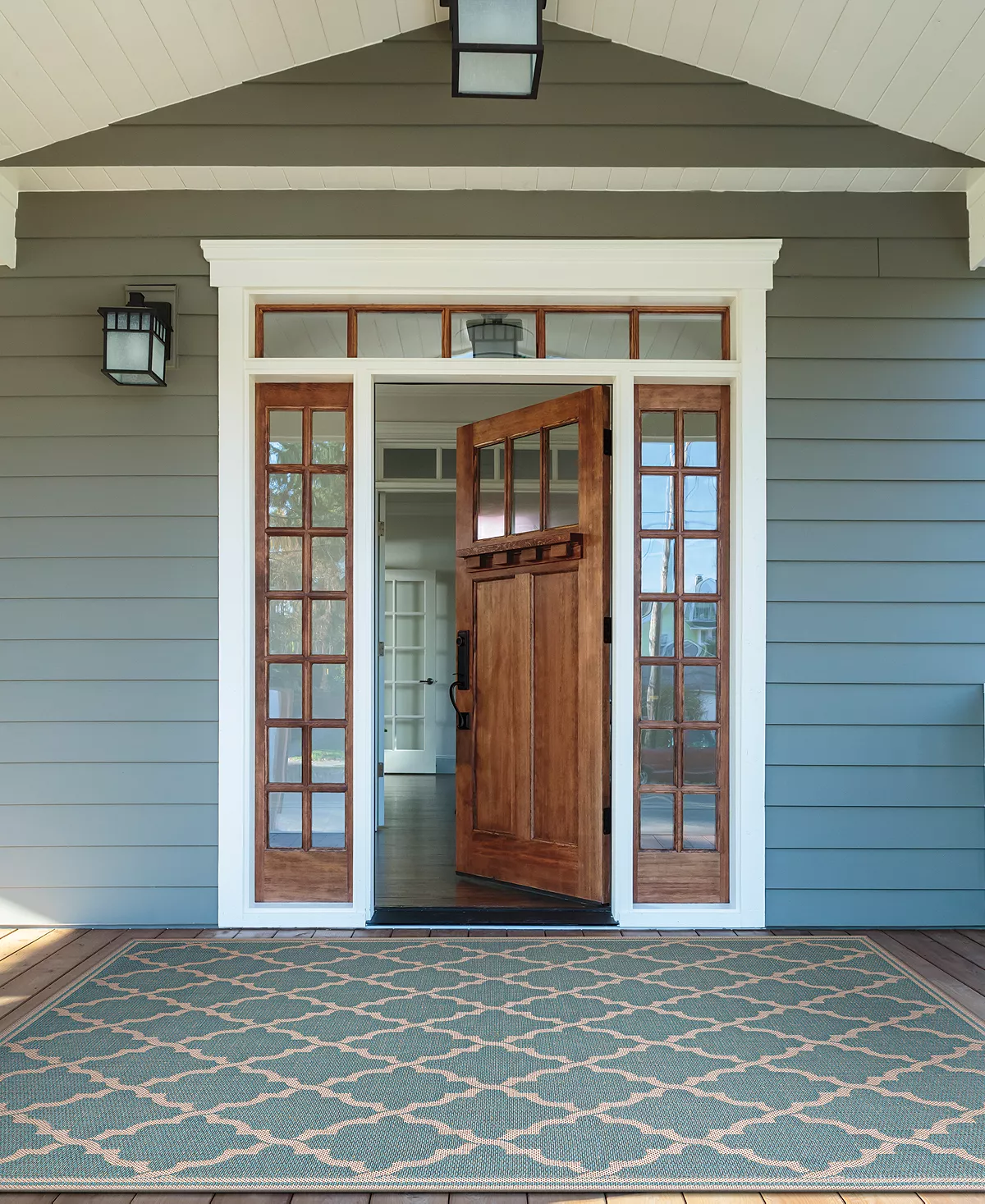Durable enough for outdoor use, the Moroccan-inspired trellis motif of this Monaco Ocean Port area rug from Couristan brilliantly contrasts with its soft sand ground to offer timeless style.