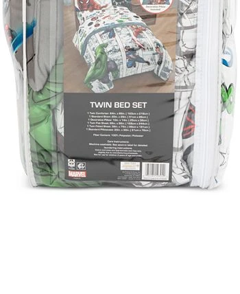 Help transform your bedroom into a super space with the Comic Punch comforter set from Avengers, featuring a printed design with Hulk, Captain America, Black Panther, Iron Man, Thor, Black Widow, and more.