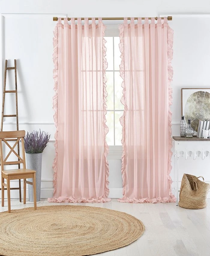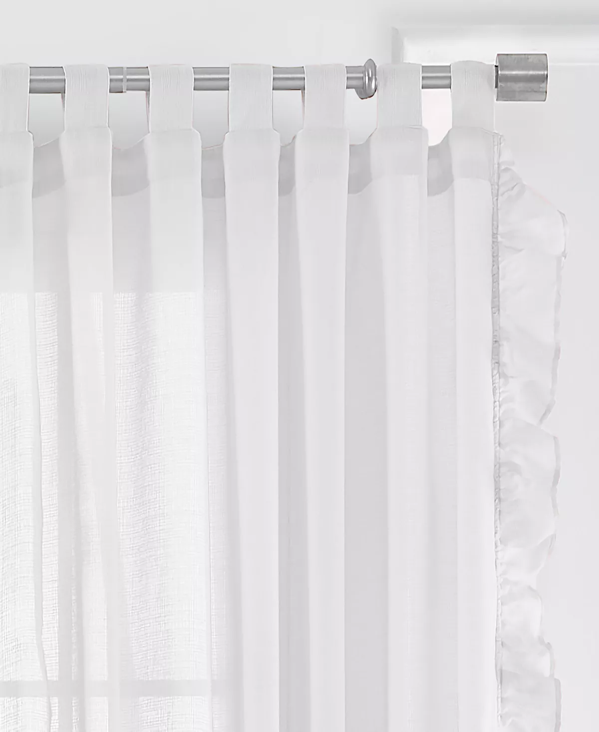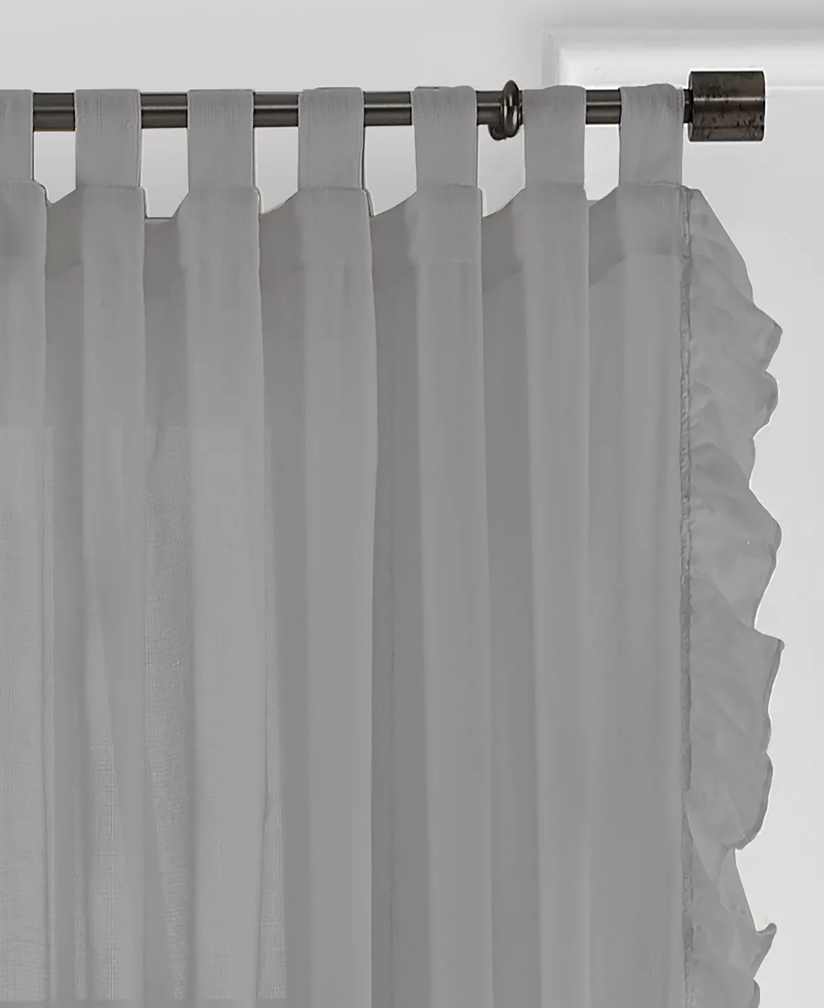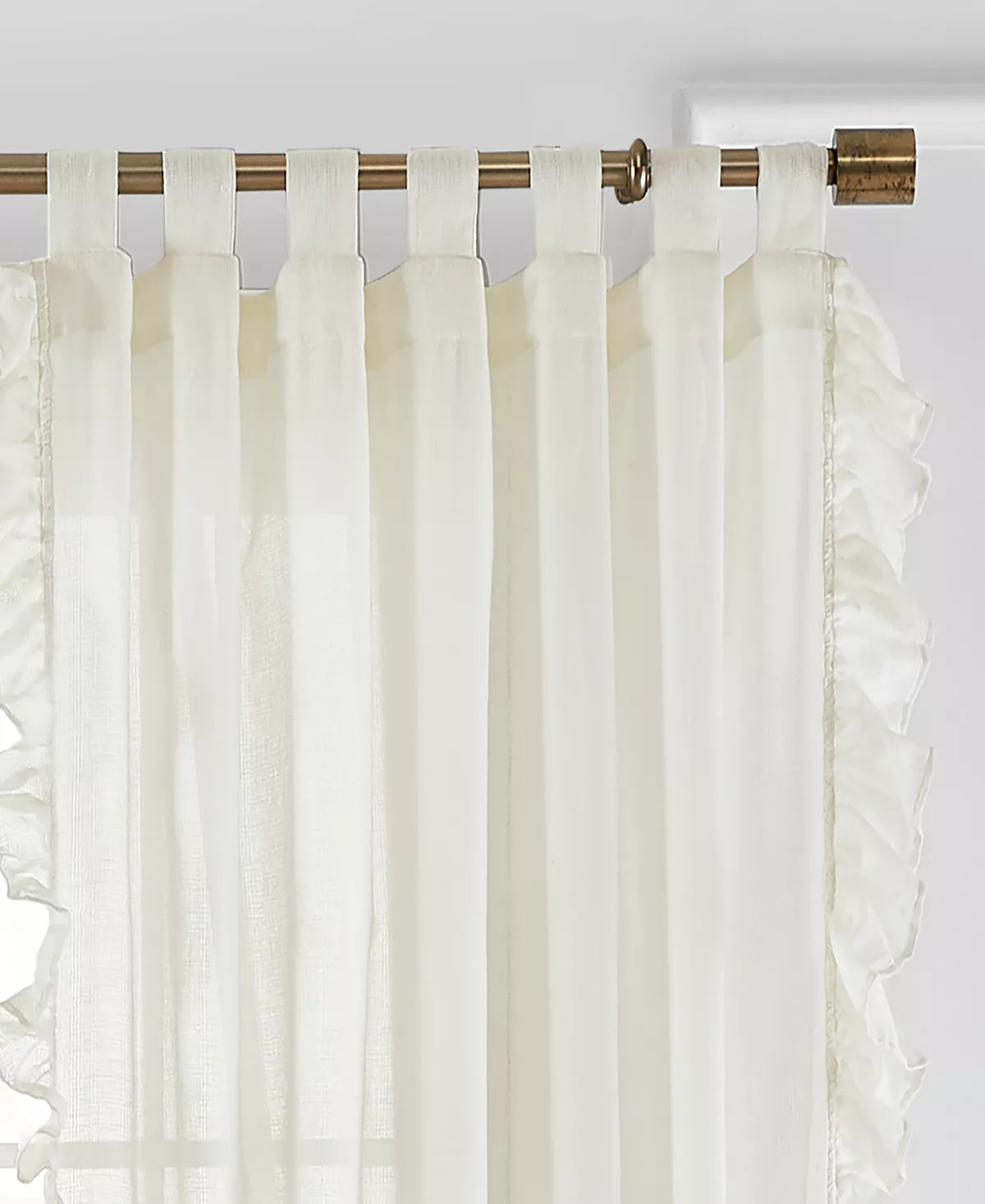 The Bella tab top ruffle gauze sheer features a rich hand and soft drape. Perfect for creating a light and airy aesthetic, while adding a touch of fashion to any room of the home.