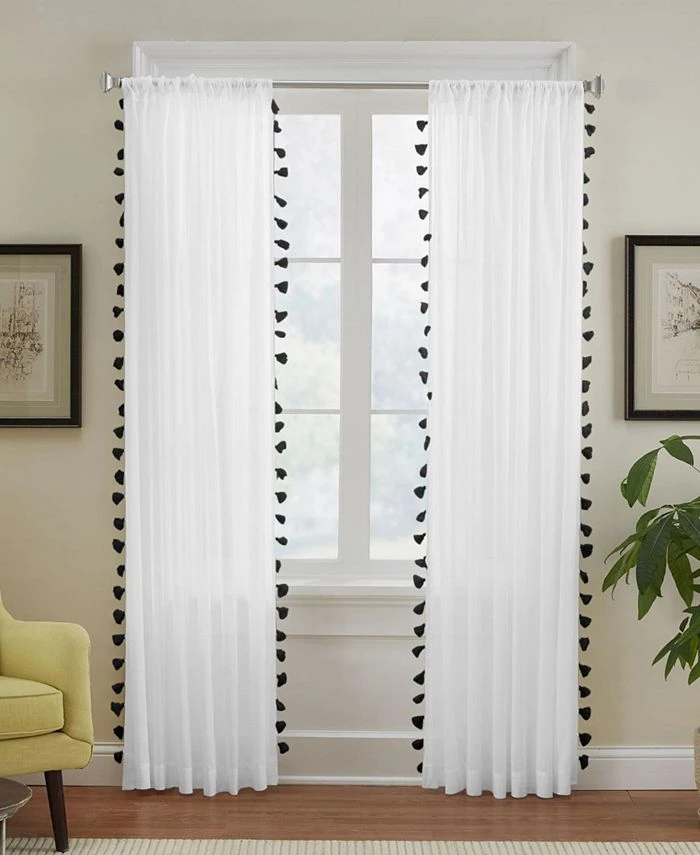 Bring a breezy, carefree look and feel to any room’s decor with the soft light-filtering cotton and charming tassel trim of this Bianca window panel from Elrene.