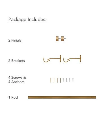 - Includes: 1 curtain rod, 2 finials and all the mounting hardware