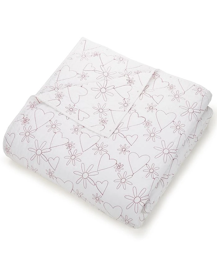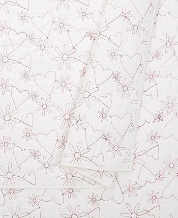 Hearts and flowers make a sweet combo in this new quilt from Jessica Simpson. The hearts and daisies are sprinkled across the quilt in a stitch through design. The pattern is purple stitching on a white ground that completes the fun look.