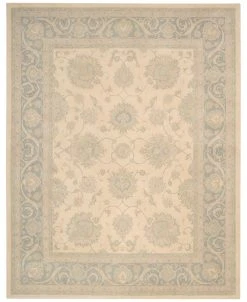 Ornate floral motifs accented in rich pastel tones of silk dance on the soothing ivory and blue ground of this hand-tufted and opulently soft Royal Serenity Collection Hyde Park area rug from kathy ireland Home.