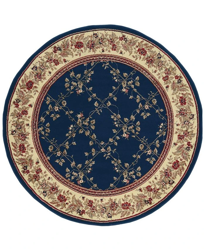 A beautiful pesaro traditional trellis pattern replete with flourishing vines winds across the navy central ground of this magnificent and soft area rug from KM Home.