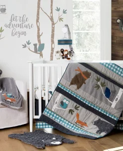 The Levtex Baby Play Day Nursery Collection features a playful woodland scene embroidered.