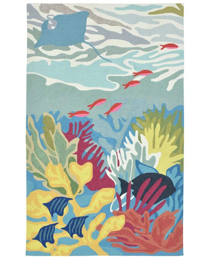 A ray floats above a charming scene of tropical fish in a coral reef in Liora Manne’s Ravella Ocean View area rug. The vivid colors would add a delightful punch to the floors in any space.