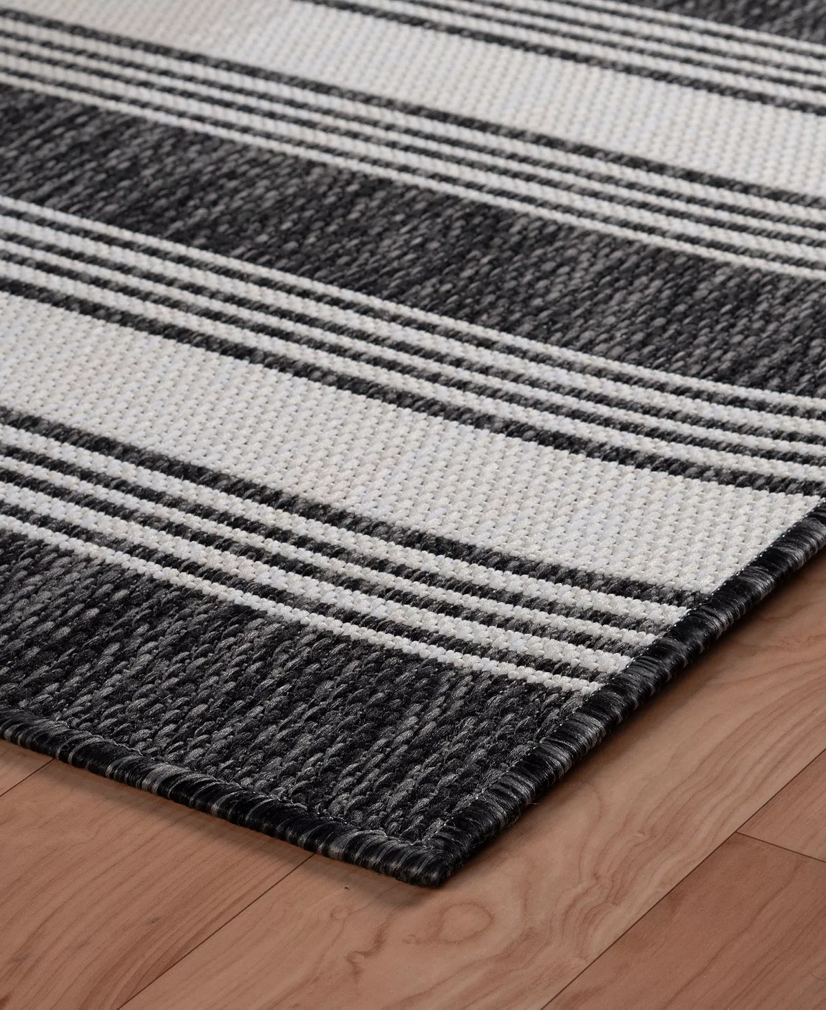 The Olympus rug collection transcends traditional geometric motifs of the past and establishes new summits of cutting-edge elegance within indoor and outdoor spaces. This neutral addition features a cabana-style striped motif in varying thicknesses to bring a sophisticated flair to your atmosphere.