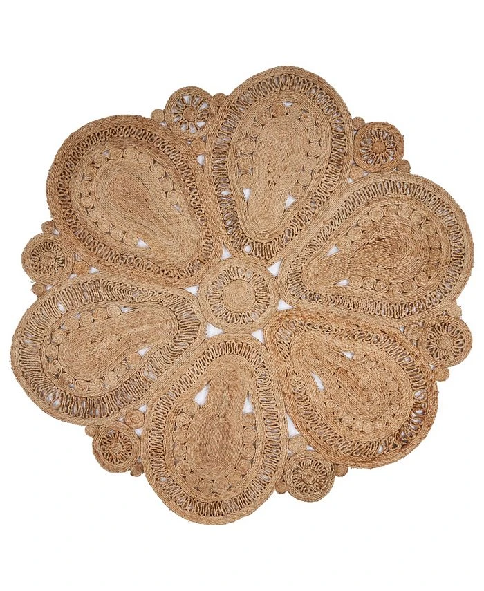 Hand braided from the natural jute of India, this piece is handcrafted for your home with delicate skill found in every piece. This piece features a doily style with a floral flare design to the jute creating intricate braiding and weaving throughout this piece.