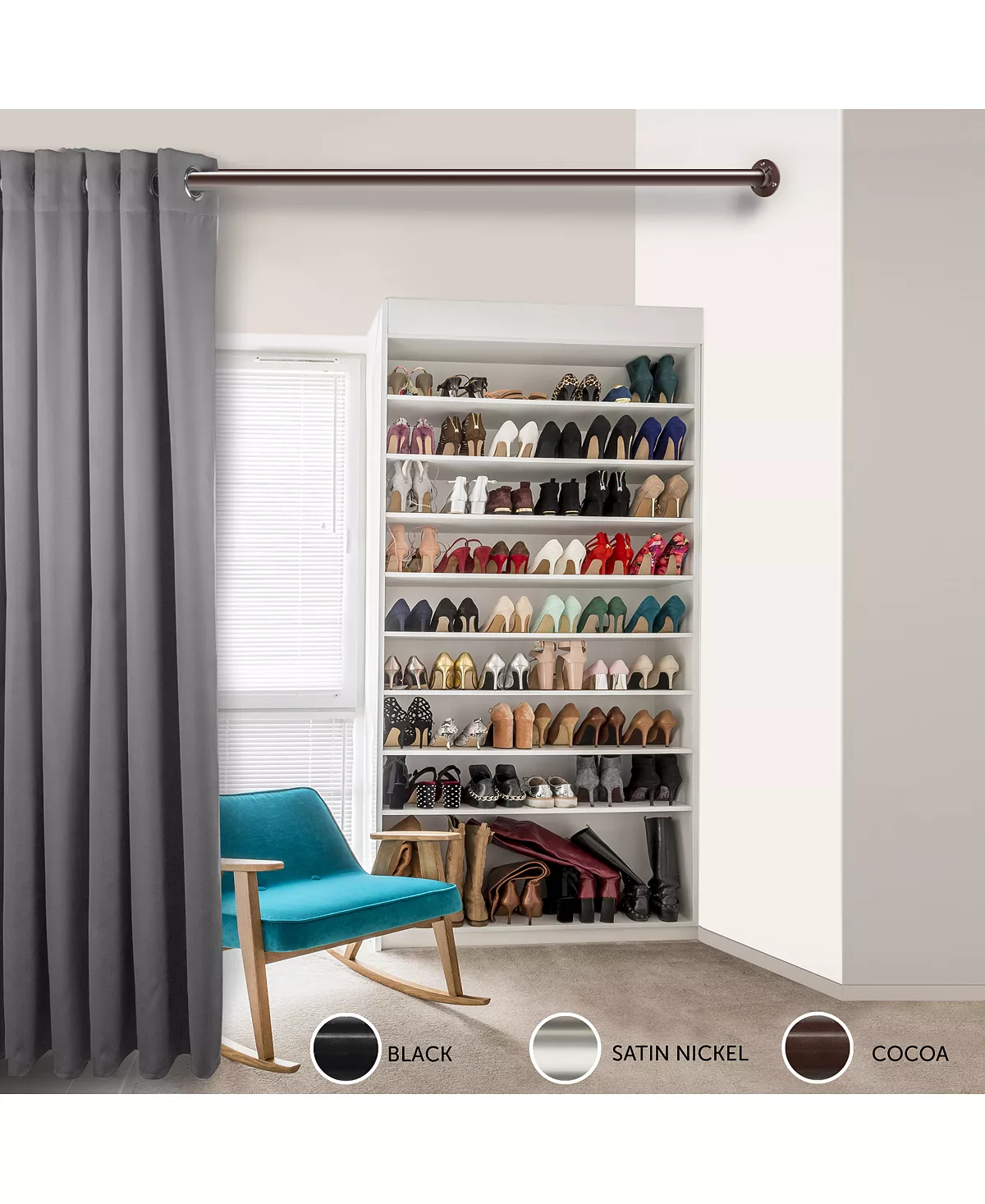 - Includes one 1.5 inch adjustable 28-48 inch closet rod, two closed sockets and mounting hardware