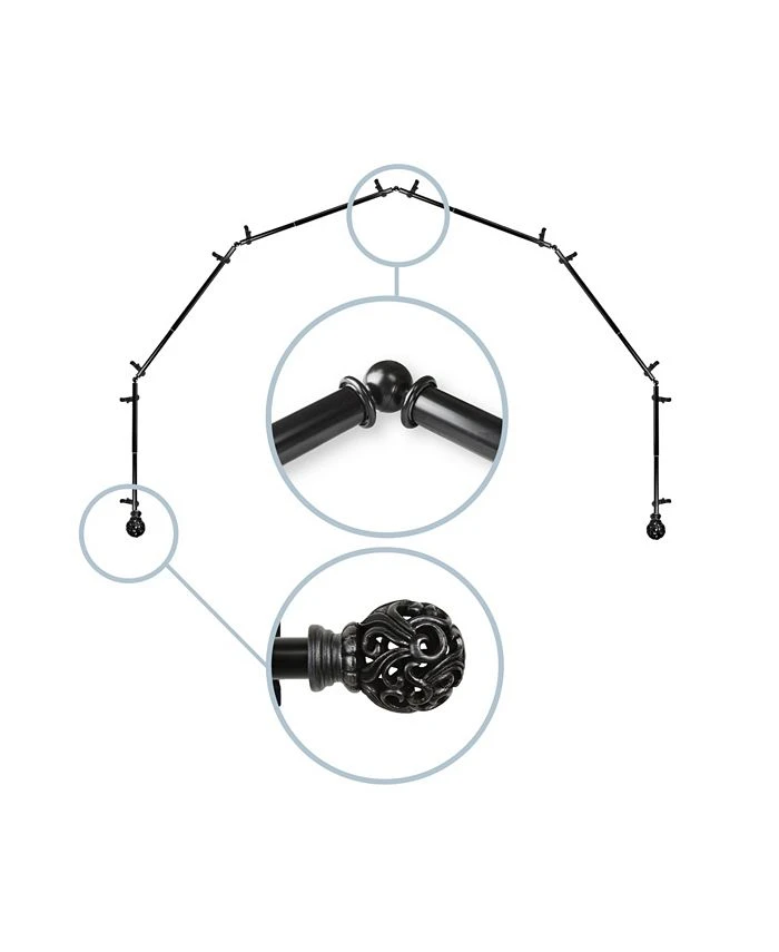 - Includes – 6 adjustable curtain rods, finials, corner connector, and mounting hardware