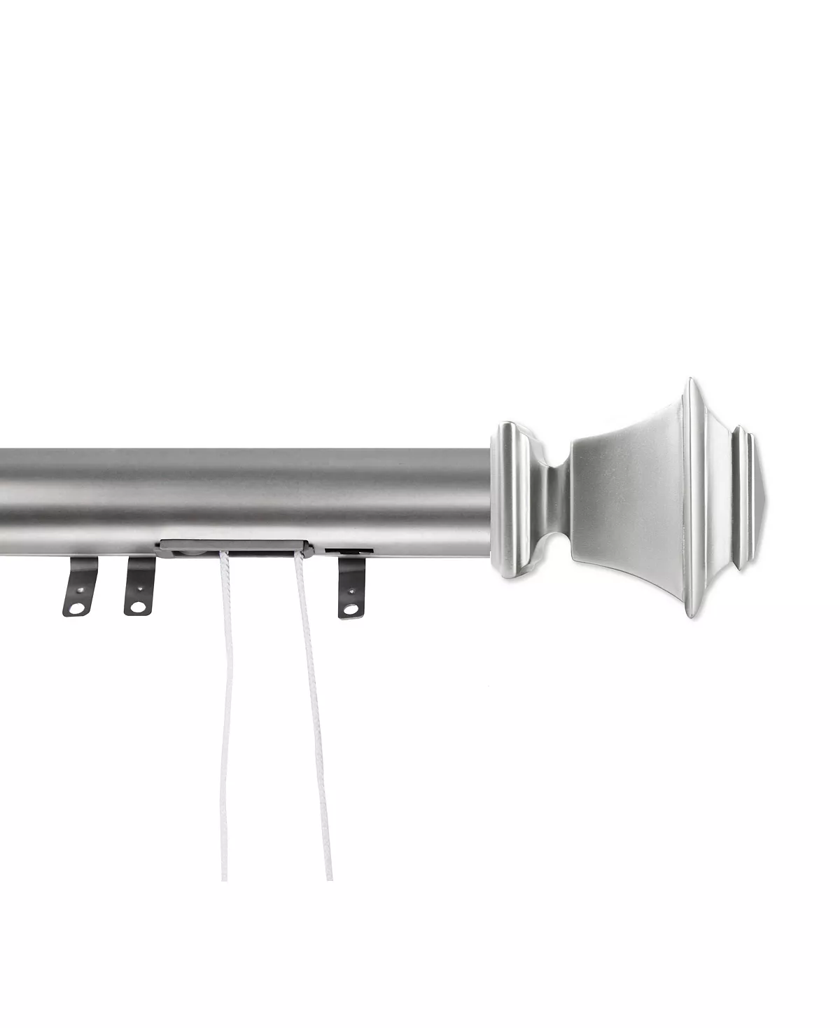 - Set includes one 84-156 in. extendable traverse rod with 40 sliders, 2-finials, 2-brackets, 3 center support, 1-cord device and mounting hardware