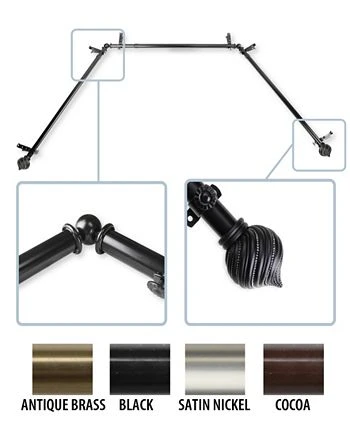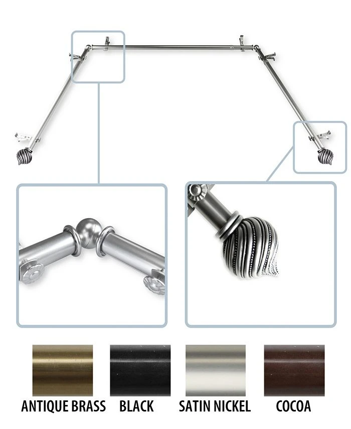 - Includes – Bay Window Rod, 2 Finials, 2 Corner Connectors, 7 Mounting Brackets and Mounting Hardware