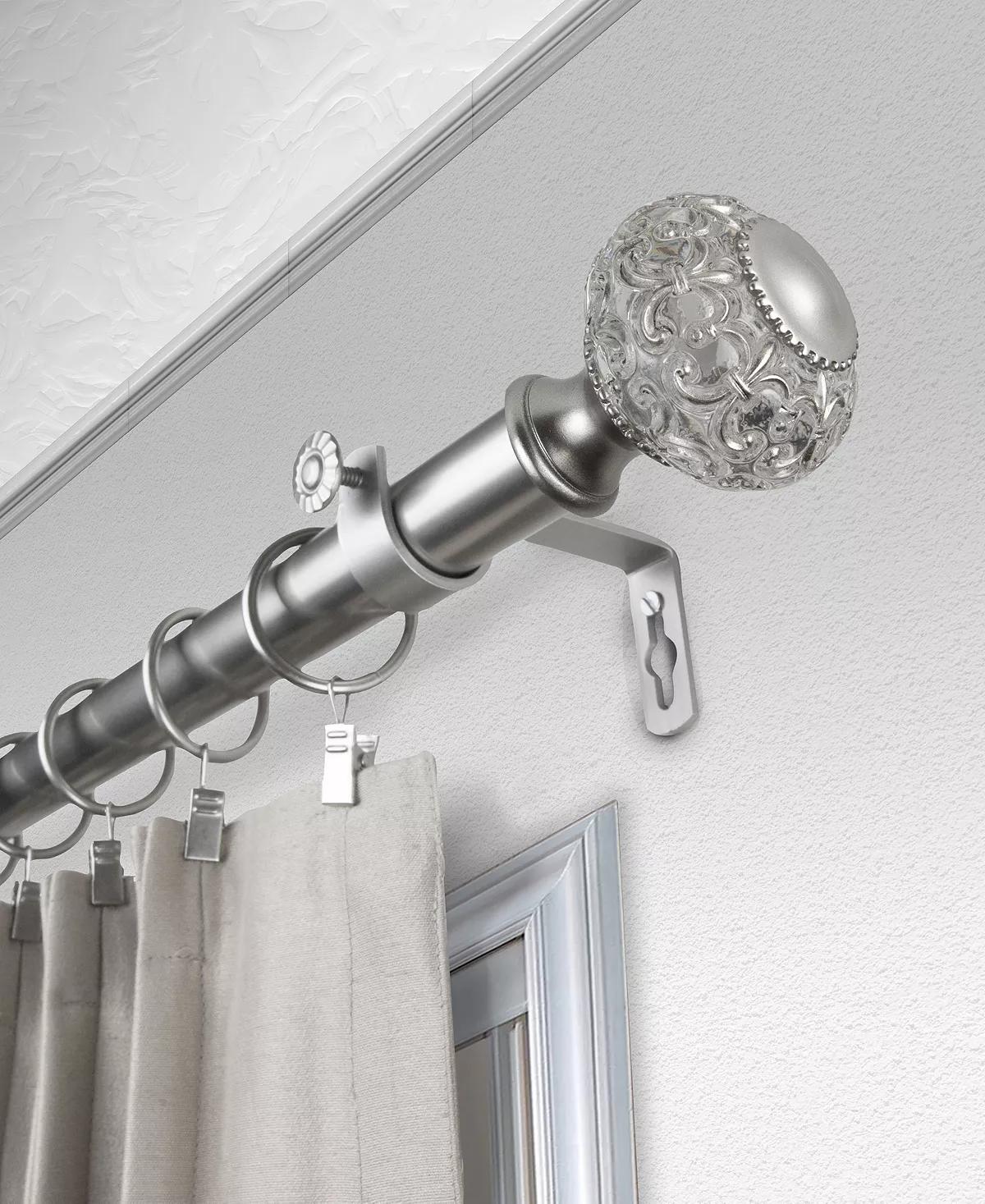 Decorate your window treatments with transparent fleur de lys inlaid ball design Elsie curtain rod from Rod Desyne.