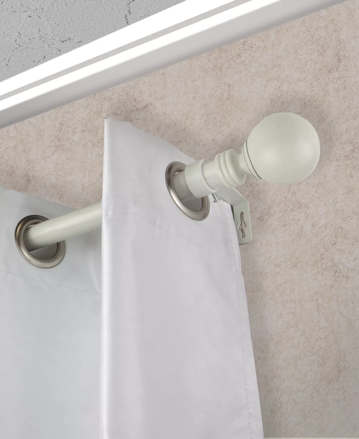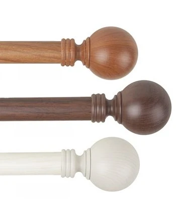 Decorate your window treatments with faux wood Globe curtain rod from Rod Desyne.