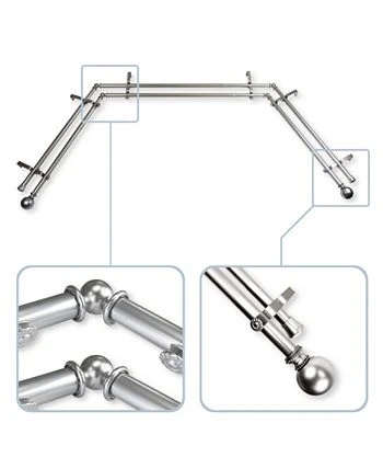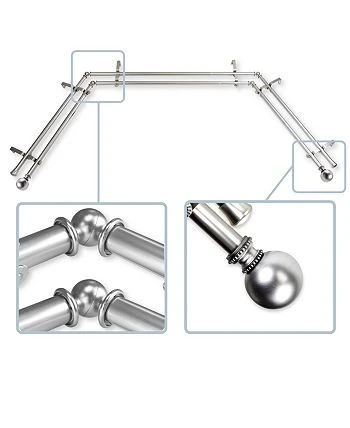- Includes – Double Bay Window Rod, 2 Finials, 4 Corner Connectors, 7 Mounting Brackets and Mounting Hardware