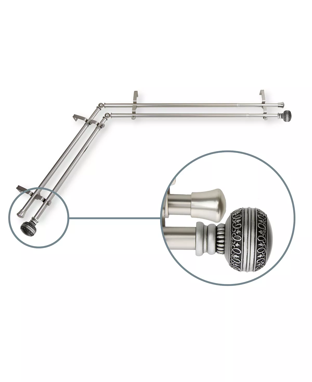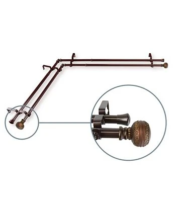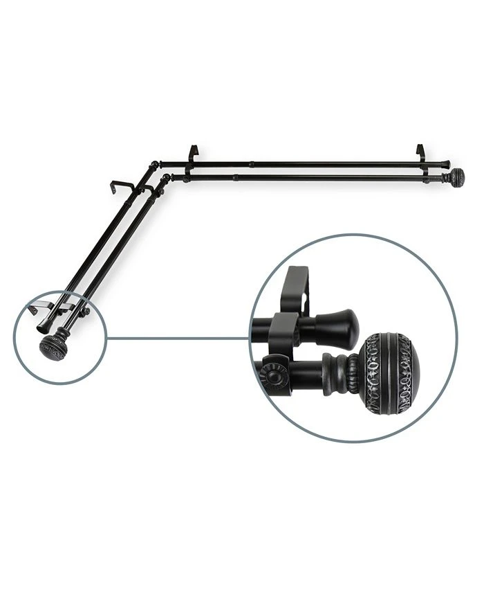 - Includes – Double corner window curtain rod, finials, corner connector and mounting hardware