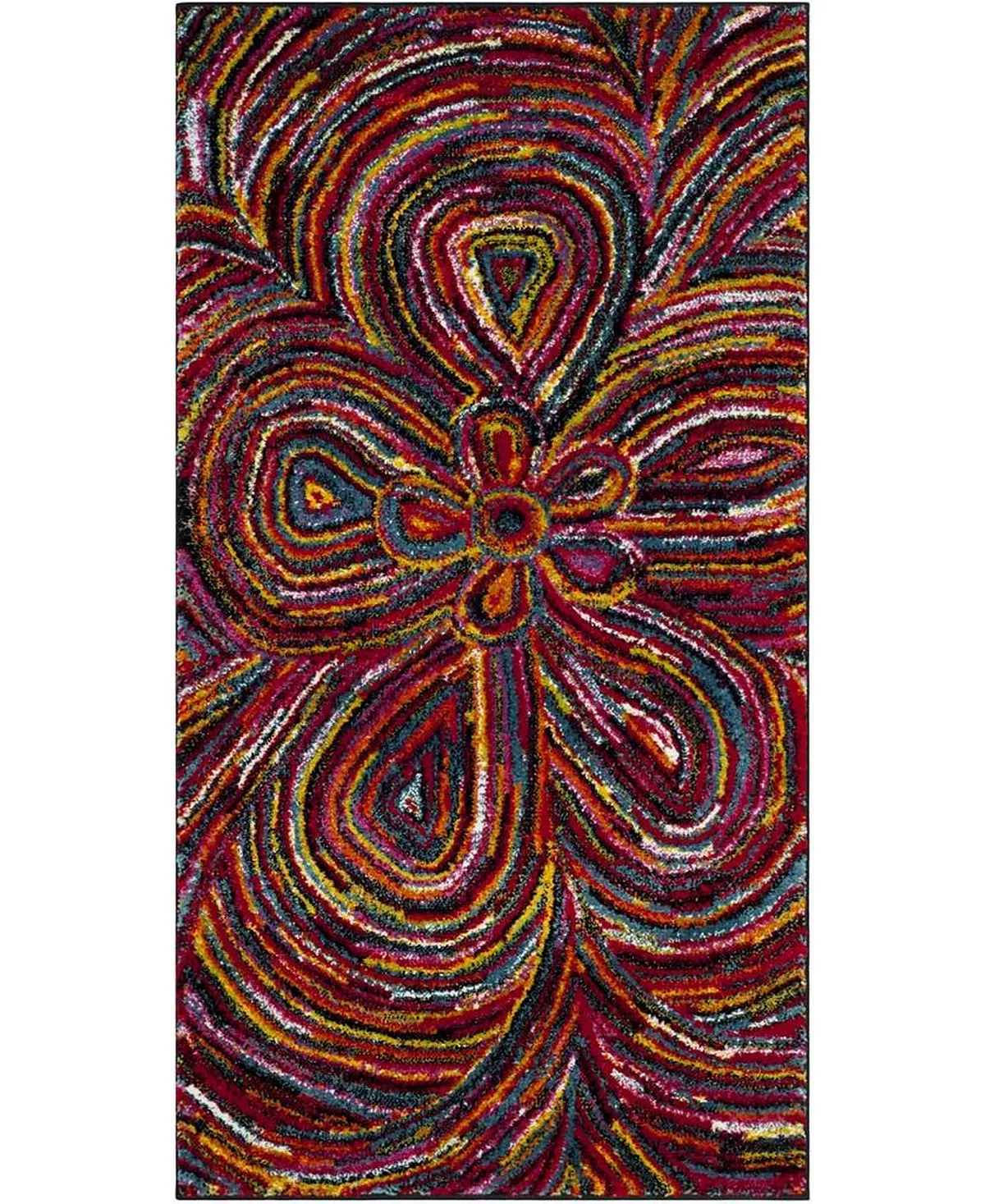 The Aruba Rug Collection is inspired by the rhythmic collage of colors, shapes and textures found in psychedelic art. Contemporary styling makes Aruba area rugs the perfect floor coverings for the family room, metro-mod living room, kids’ playroom or teens’ bedroom. Power loomed from soft synthetic yarns for long lasting texture and vivid color.