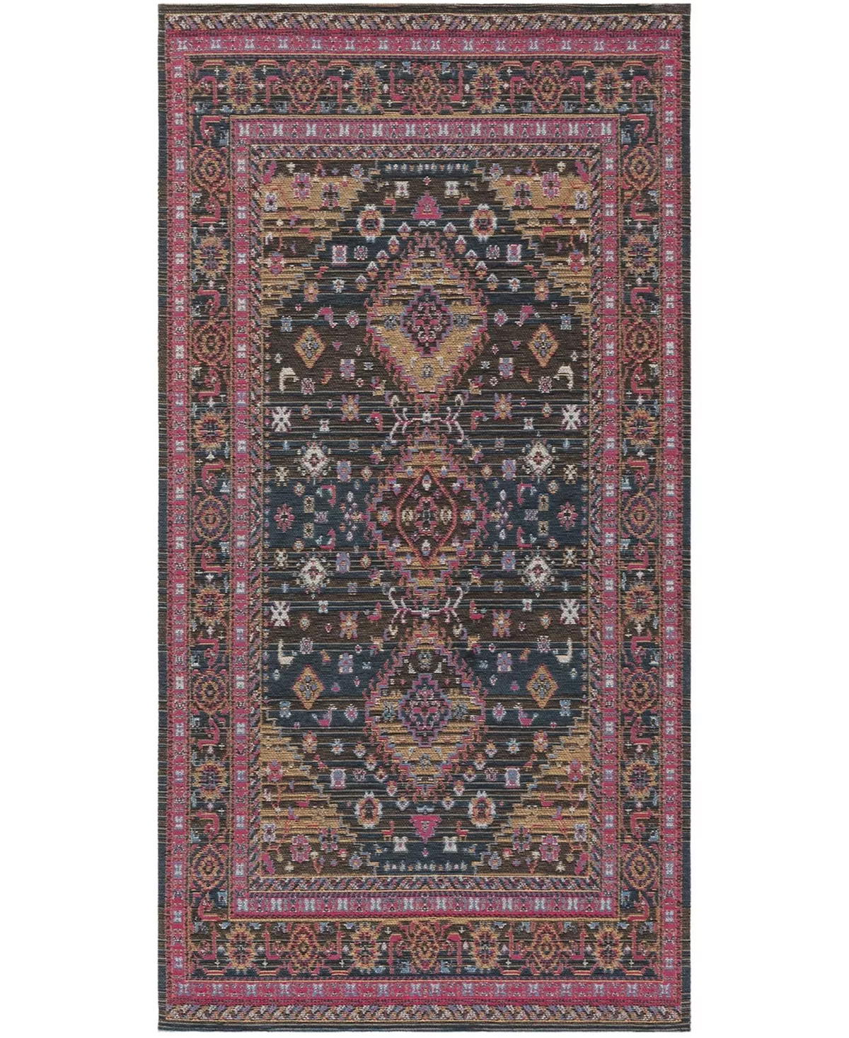 Each rug is power loomed in Belgium of 100 percent organic viscose yarn in a low cut pile to recreate the threadbare appearance of worn vintage carpets. Yarns are deliberately dyed unevenly to add old-world character to the collection’s classic Persian and Turkish designs.