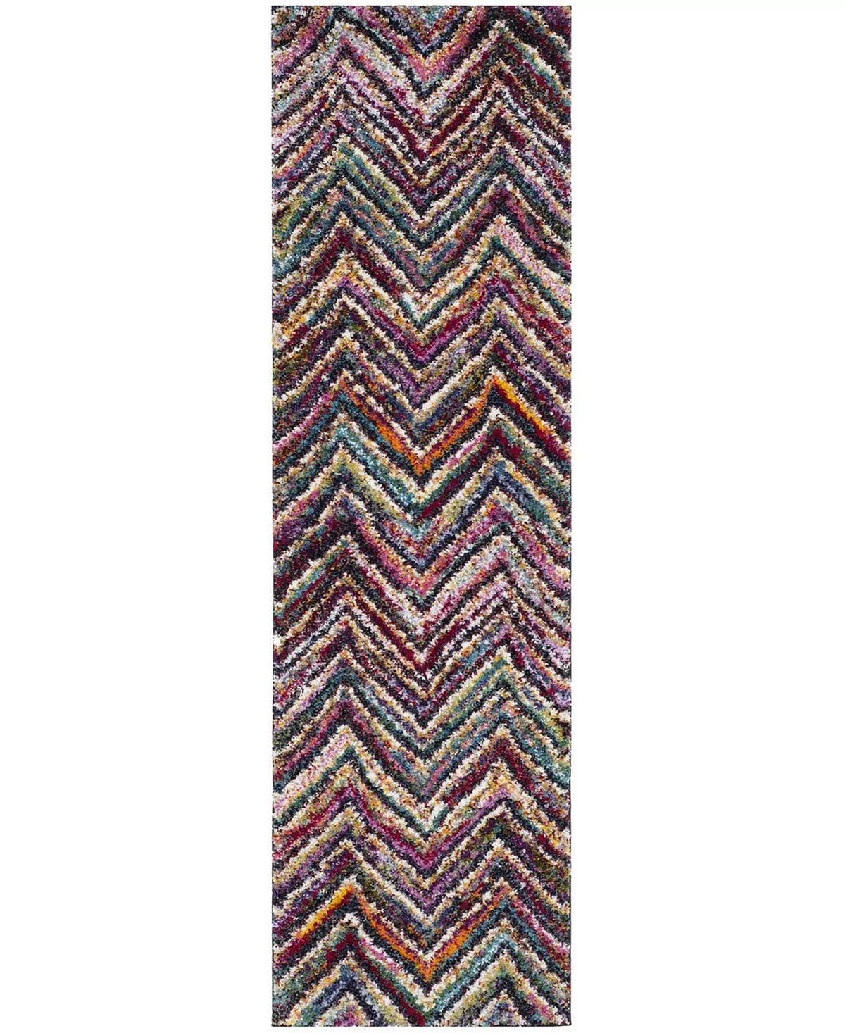 The hypnotic nesting circle motif of this Fiesta shag rug by Safavieh celebrates vivid, intense hues that bring alluring design and abundant color to room decor. Swirls of color and high-touch texture add invigorating character to living spaces. Power-loomed with durable synthetic yarns, for easy-care radiance and lasting beauty.