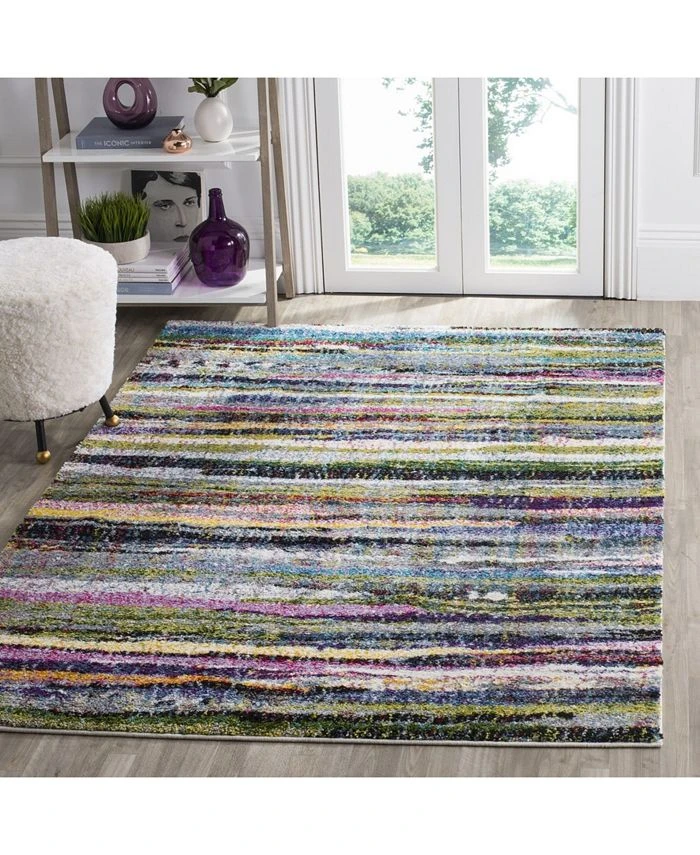 The hypnotic nesting circle motif of this Fiesta shag rug by Safavieh celebrates vivid, intense hues that bring alluring design and abundant color to room decor. Swirls of color and high-touch texture add invigorating character to living spaces. Power-loomed with durable synthetic yarns, for easy-care radiance and lasting beauty.