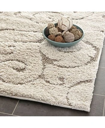 This Safavieh Florida shag captures the easy-going lifestyle of the southern peninsula in an ultra-plush. A sculpted high-low pile emphasizes the detailed damask vine designs for a stylish textural display perfect for transitional bedroom or living room decor. Power-loomed using synthetic fibers for an incredibly long-lasting shag carpet.