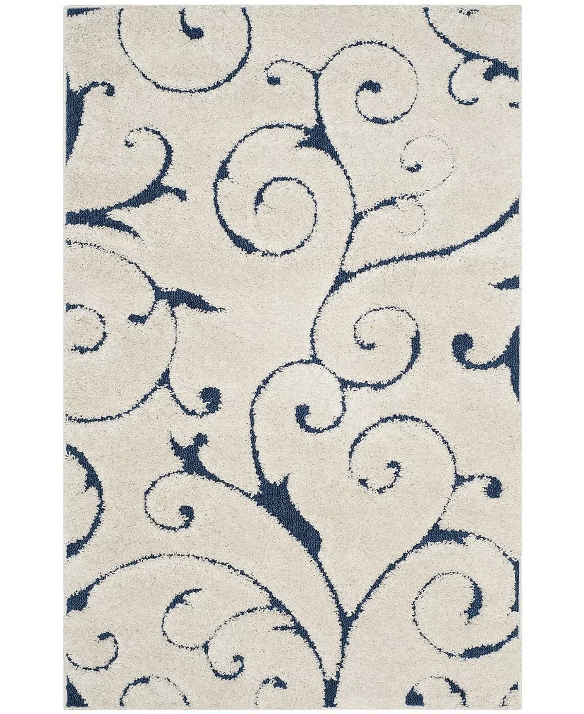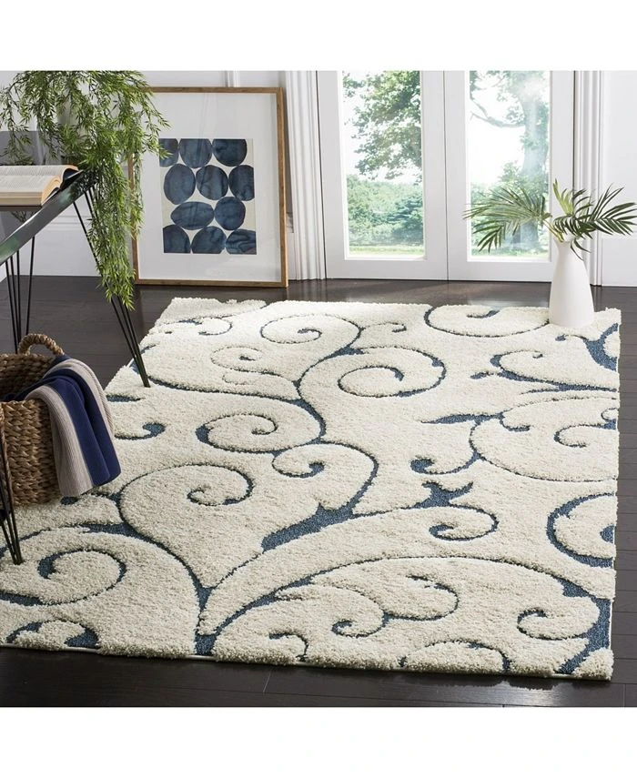 This Safavieh Florida shag captures the easy-going lifestyle of the southern peninsula in an ultra-plush. A sculpted high-low pile emphasizes the detailed damask vine designs for a stylish textural display perfect for transitional bedroom or living room decor. Power-loomed using synthetic fibers for an incredibly long-lasting shag carpet.