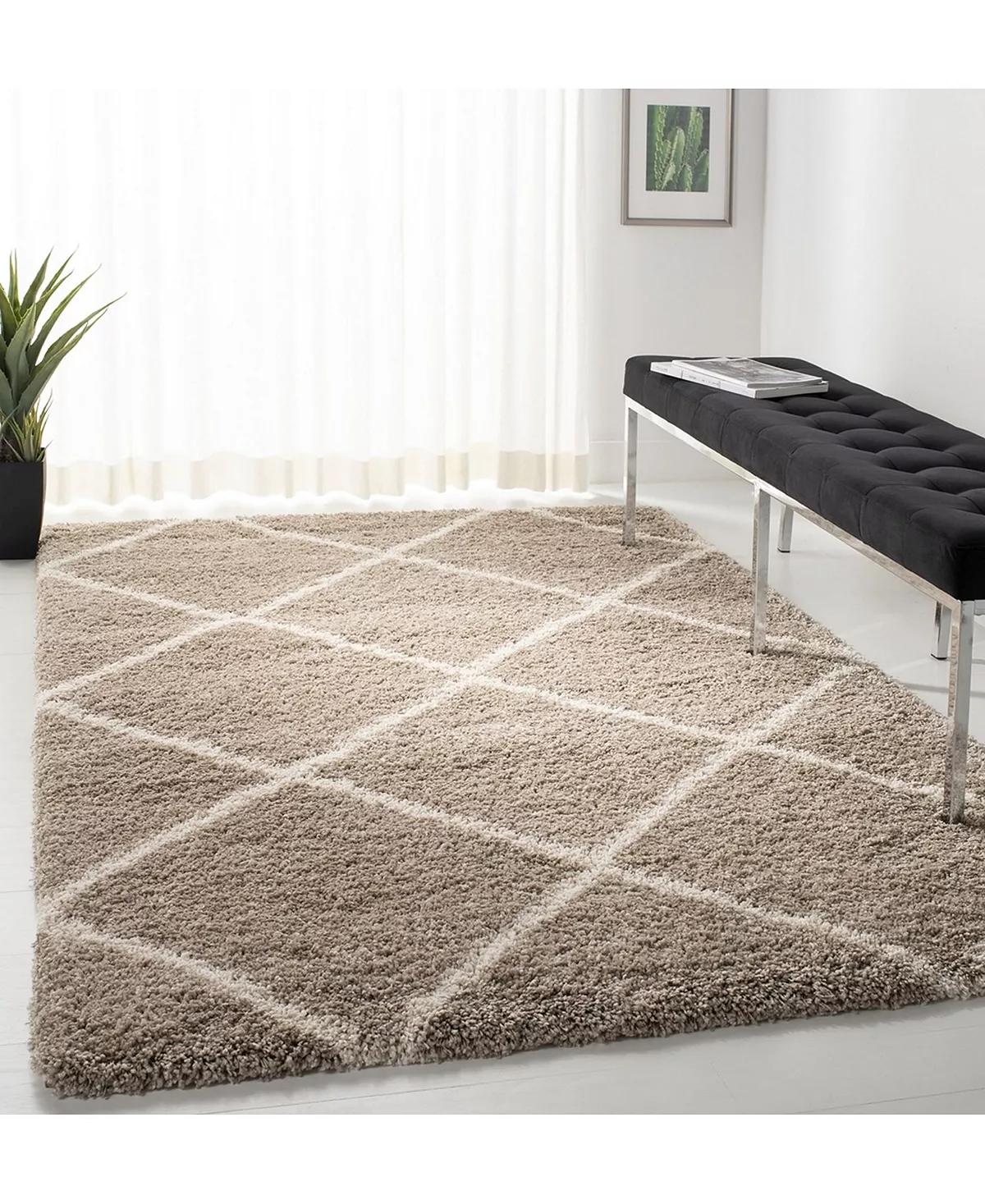 This luxurious Hudson Shag by Safavieh displays classic tile designs set in a thick, plush shag pile. Onion-shaped tile patterns stretch across the lush ivory pile of this contemporary styled shag floor covering. Easy-care yarns that will stand tall even in high traffic living areas.