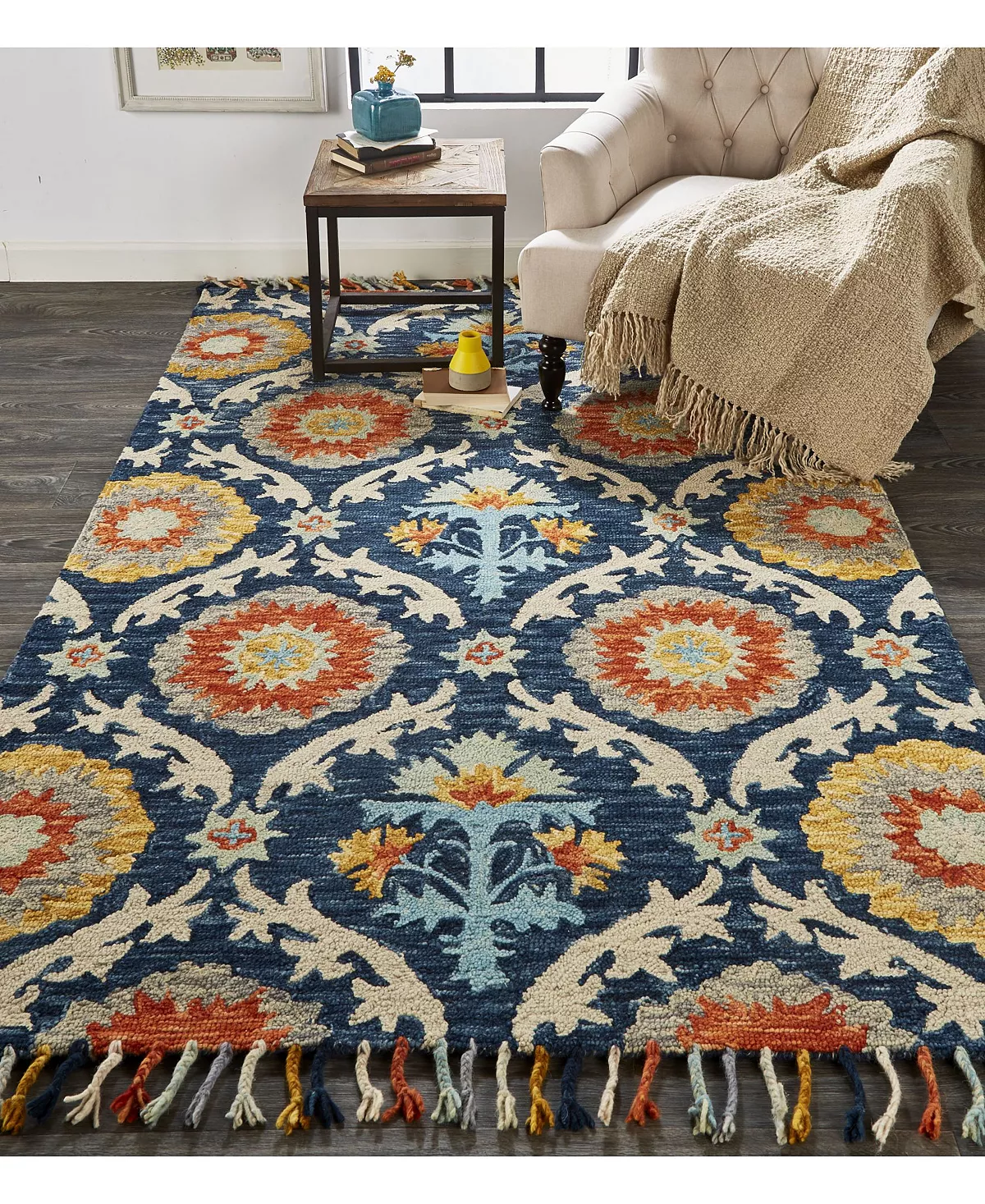 Hand-tufted in India from luxurious wool the Aedlina collection marries warm natural tones with energetic pops of color. Inspired by Moroccan design these on-trend rugs are made with the traditional tassels at each end grounding the design and adding extra texture to the piece.