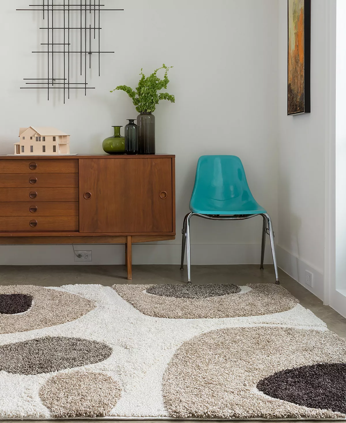 The Spell collection is a transitional power-loomed shag style collection that showcases a variety of neutral earth tone colors and over-scaled patterns. This collections transitional designs are elaborated with varying pile heights to create a high-low texture effect.