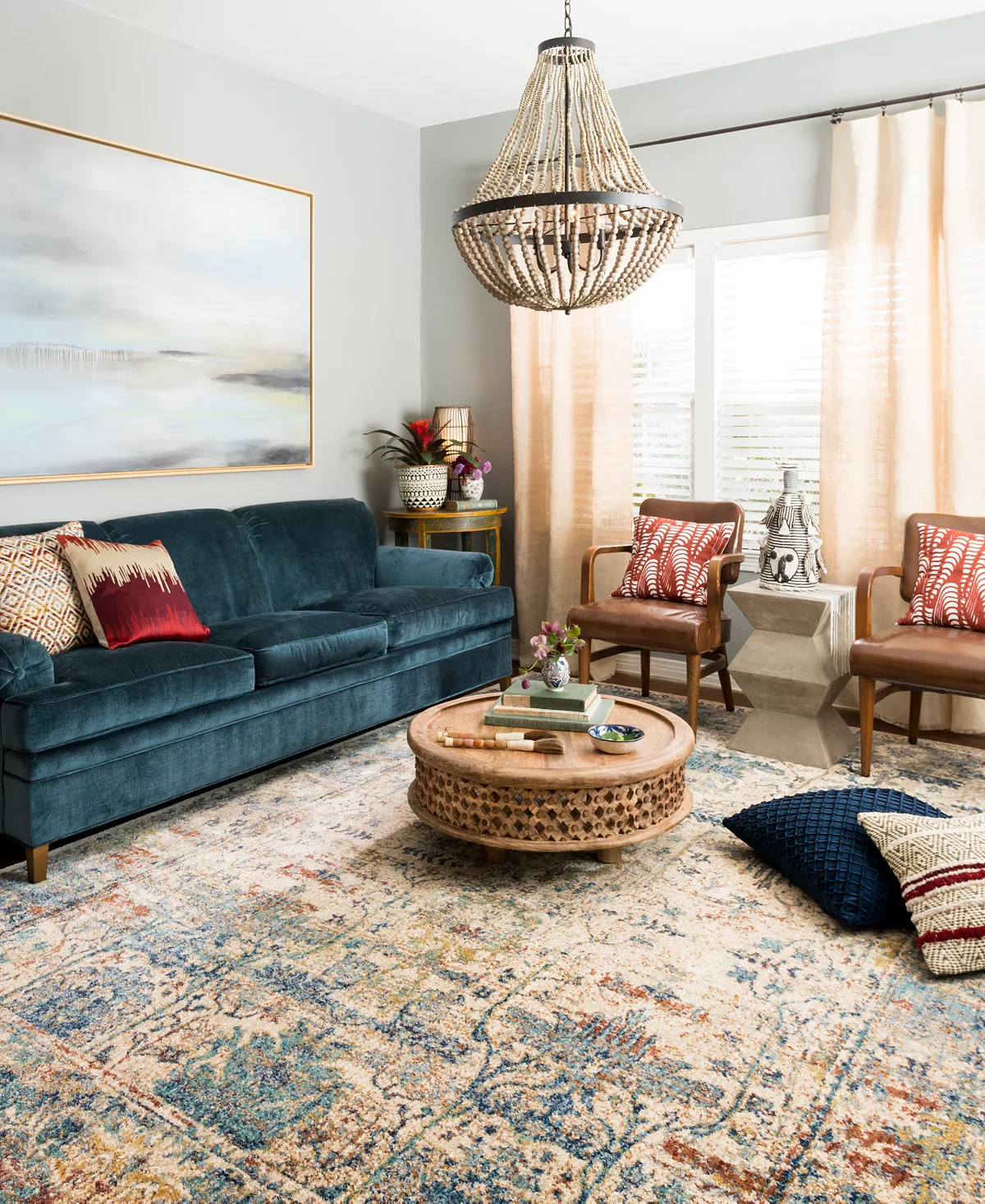 Old world charm and grandeur is evoked by this luxurious Tatiana style from Spring Valley Home. Reminiscent of the pieces that once graced the grand halls of Europe’s palaces, wondrous lotus and peony motifs radiate from a central floral medallion in vivid hues that sparkle on a distressed ground.