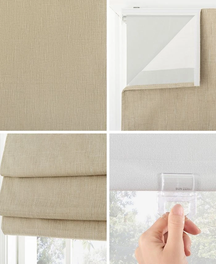 - Textured fabric with Sun Zero Total Blackout technology blocks out 100 percent of outside light