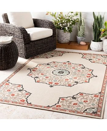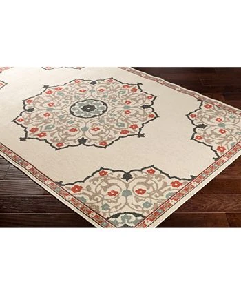 Accentuate the allure of your space through the whimsy elegance portrayed by the ornate central medallion and floral motif borders of Surya’s solar-tone Alfresco ALF-9679 area rug. A soft low-pile ground does not betray its durable design, allowing for versatile use.
