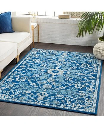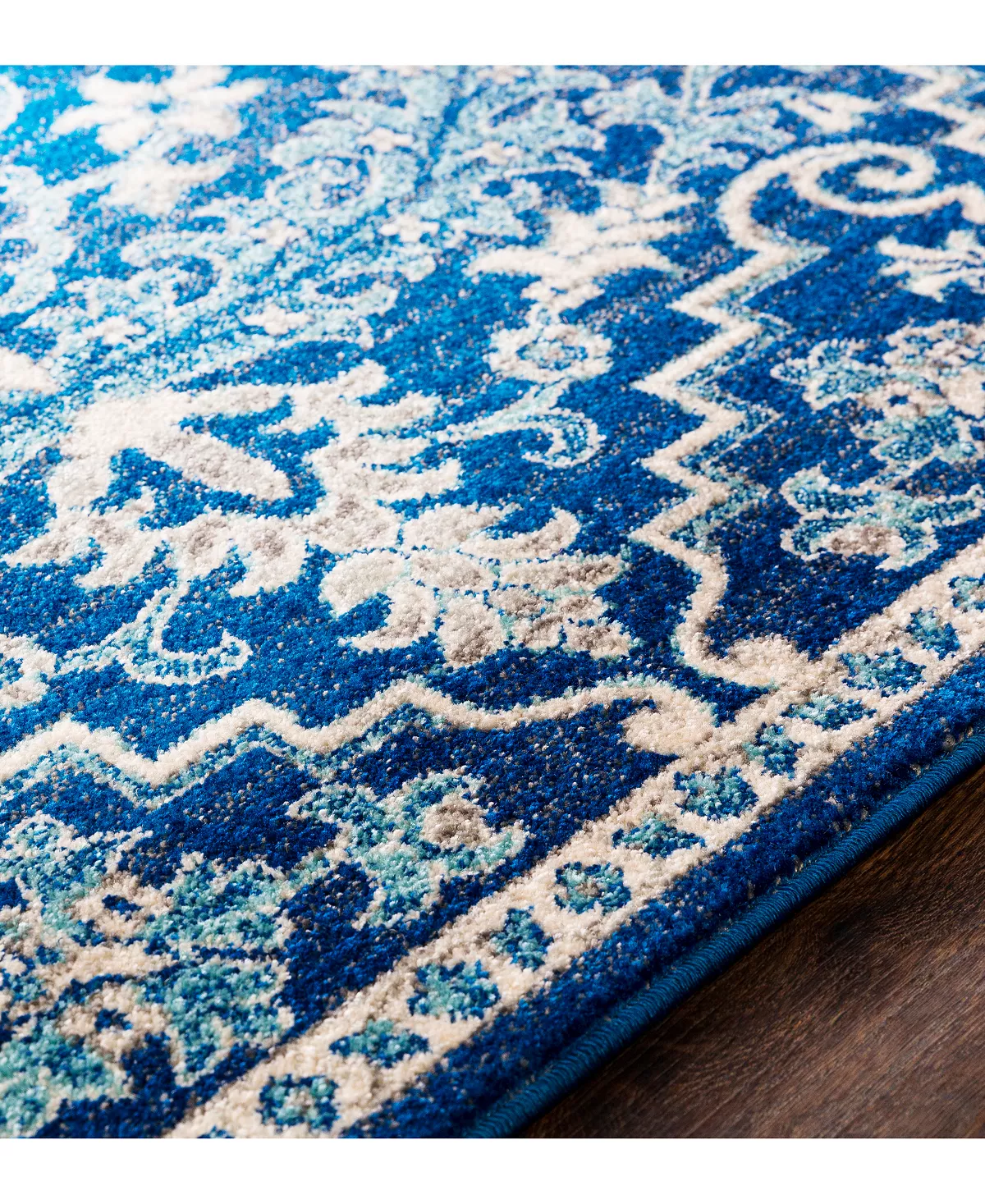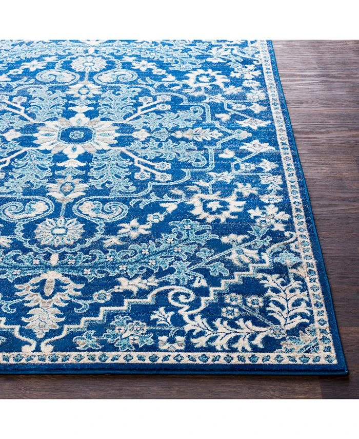 Enrich the décor of your space with the deep blue tones and ornate peony and acanthus leaf motifs of the standout and soft, Harput HAP-1068 area rug by Surya.